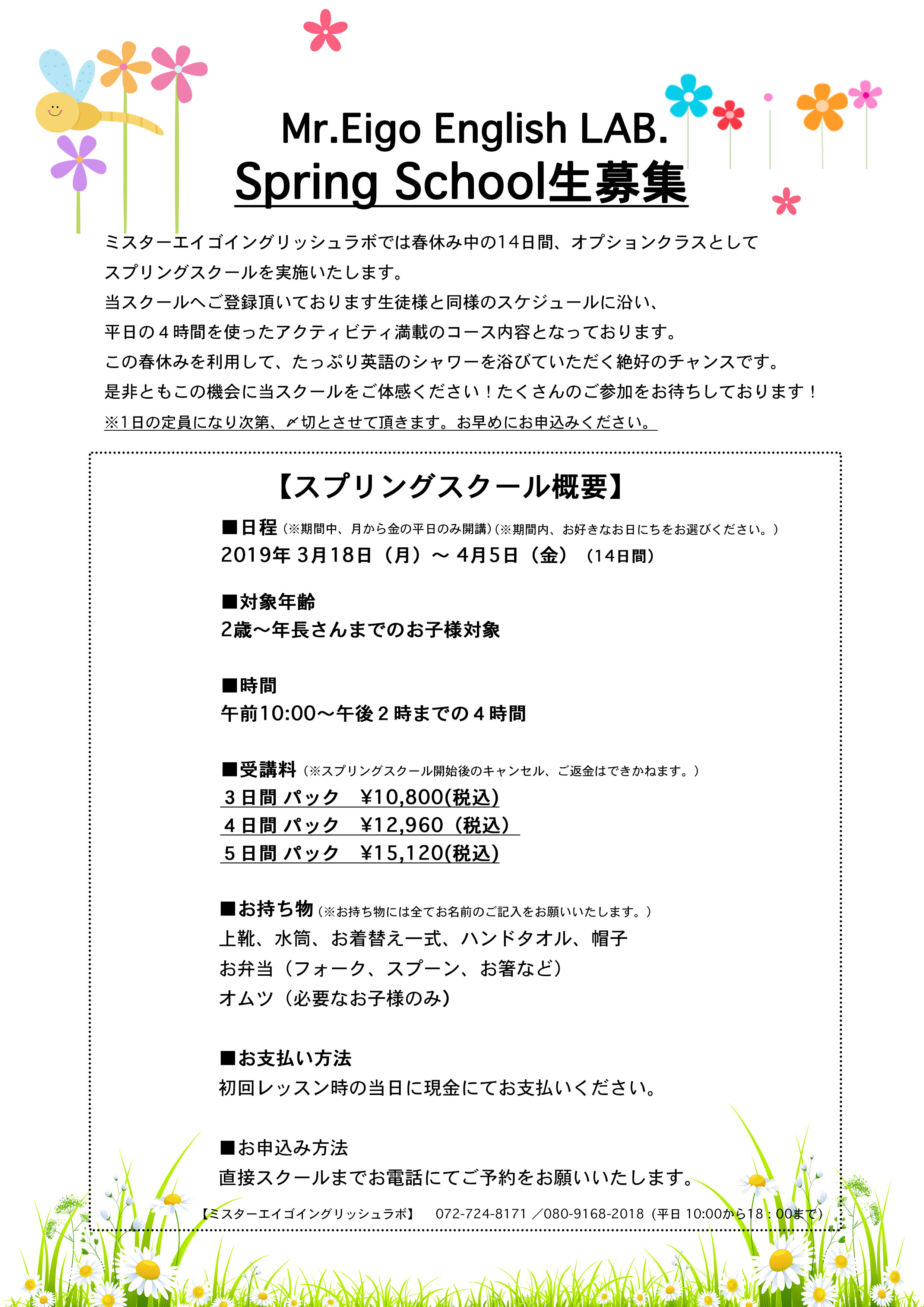 【2019年 スプリングスクール生募集のお知らせ】