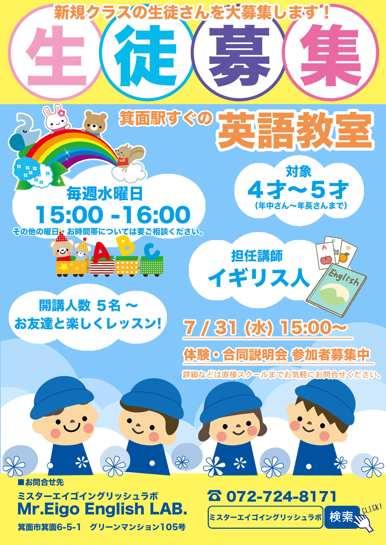 新規生徒さんを大募集します!数には限りがありますので、お早めにお申込みください。